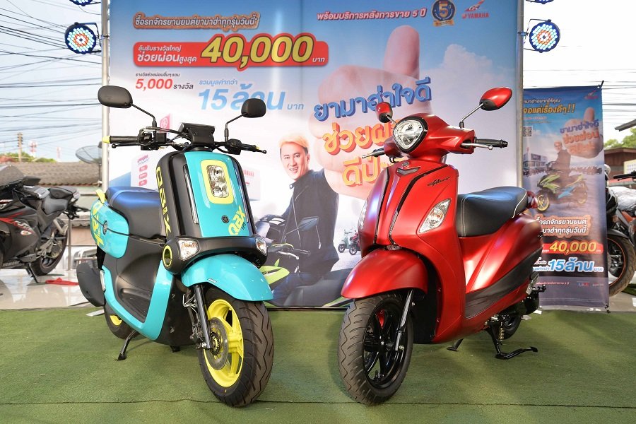 ทัตสึยะ โนซากิ ประธานกรรมการบริหาร พงศธร เอื้อมงคลชัย รองประธานกรรมการบริหาร และผู้บริหารระดับสูง บริษัท ไทยยามาฮ่ามอเตอร์ จำกัด พร้อมด้วย ธงชัย กมลพรพาณิช ประธานกรรมการ บริษัท สยามยามาฮ่าอมตะ จำกัด ร่วมมอบบัตรกำนัลส่วนลดมูลค่า 40,000 บาท แก่ กรรณิการ์ แสนวงษ์ และวีรวัฒน์ ป้อมแจ่มศรี ลูกค้าที่ซื้อรถจักรยานยนต์ยามาฮ่า Grand Filano Hybrid และ QBIX ผ่านแคมเปญ "ยามาฮ่า ใจดี ช่วยผ่อน ดีปะล่ะ" ที่ร้านยามาฮ่าสแควร์ สยามยามาฮ่าอมตะ จ. ชลบุรี