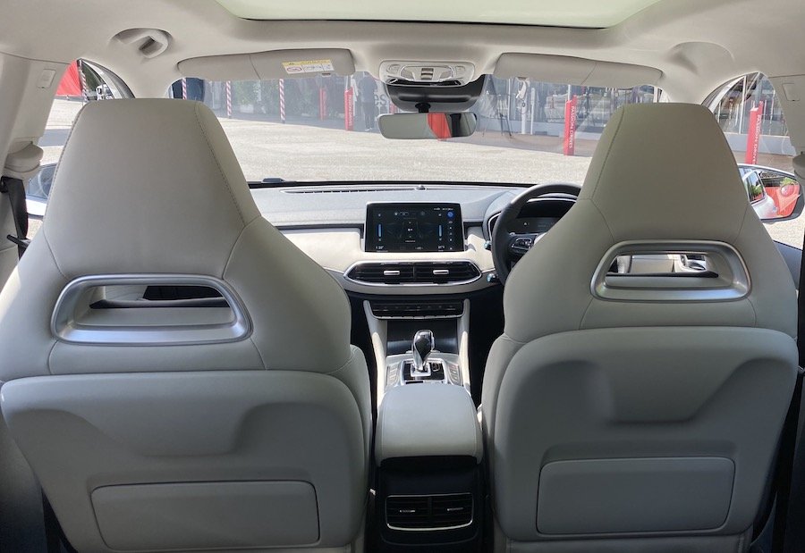 สิ่งที่เห็นรูปลักษณ์ภายนอก คือ เปลี่ยนล้อแม็กดีไซน์ใหม่ Logo PHEV ด้านท้ายรถ และฝาเปิดชาร์จไฟด้านขวามือ ส่วนภายในหุ้มเบาะแบบทูโทนสีขาวตัดเทา มีเฉพาะตัวถังสีขาวเท่านั้น ส่วนตัวถังสีอื่นเบาะจะเป็นสีดำหน้าปัด Multi – Function Display แสดงข้อมูลการขับขี่ครบถ้วน เพิ่มการแสดงผลการทำงานของระบบไฮบริด ได้มีโอกาสได้ทดลองขับช่วงสั้นๆ ในสนามทดสอบของ MG พอจับอาการได้ว่า ช่วงล่างแน่นหนึบกว่าตัว MG HS อัตราเร่งแรงกว่า ขับสนุกกว่า