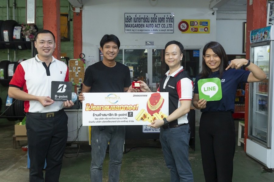 บริษัท บริดจสโตนเซลส์ (ประเทศไทย) จำกัด ผู้จัดจำหน่ายยางรถยนต์นั่ง, รถโดยสาร, รถบรรทุก และรถเชิงพาณิชย์ชั้นนำในประเทศไทย นำทีมโดยผู้บริหารและตัวแทนพนักงานเข้าเยี่ยมร้านค้าสมาชิก “B-point” ในเขตกรุงเทพฯ ปริมณฑล และจังหวัดชลบุรี เพื่อมอบทองให้ร้านค้าสมาชิกที่สะสมคะแนนแลกทอง ผ่านโปรแกรม “B-point” ปีที่ 2