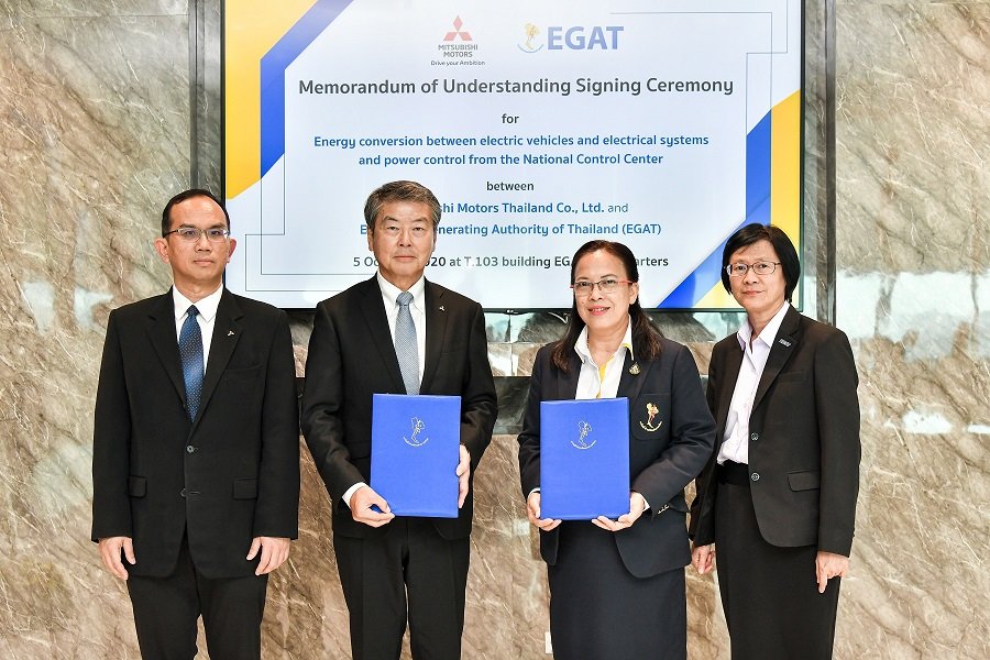 บริษัท มิตซูบิชิ มอเตอร์ส (ประเทศไทย) จำกัด นำโดย โมะริคาซุ ชกกิ กรรมการผู้จัดการใหญ่ และดร. จิราพร ศิริคำ รองผู้ว่าการยุทธศาสตร์ การไฟฟ้าฝ่ายผลิตแห่งประเทศไทย ร่วมพิธีลงนามบันทึกข้อตกลงความร่วมมือ เพื่อร่วมกันพัฒนาศึกษาแนวทาง ทดสอบ และเก็บข้อมูล การแปลงพลังงานระหว่างยานยนต์ไฟฟ้ากับโครงข่ายไฟฟ้า ด้วย มิตซูบิชิ เอาท์แลนเดอร์ พีเอชอีวี จากศูนย์ควบคุมระบบกำลังไฟฟ้าแห่งชาติ พิธีลงนามฯ ดังกล่าวจัดขึ้นที่สำนักงานใหญ่ การไฟฟ้าฝ่ายผลิตแห่งประเทศไทย นอกจากนั้น ความร่วมมือในครั้งนี้ยังรวมถึงแผนการจัดแสดงเทคโนโลยี เดนโด ไดร์ฟ เฮ้าส์ ของมิตซูบิชิ มอเตอร์ส ที่ศูนย์การเรียนรู้การไฟฟ้าฝ่ายผลิตแห่งประเทศไทย สำนักงานกลาง เพื่อเป็นการส่งเสริมการใช้นวัตกรรมพลังงานเพื่อความยั่งยืน