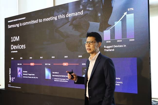 มารุต มณีสถิตย์ ผู้อำนวยการกลุ่มธุรกิจลูกค้าองค์กร ธุรกิจโทรคมนาคมและไอที บริษัท ไทยซัมซุง อิเลคโทรนิคส์ จำกัด เปิดเผยว่า ซัมซุง ได้ค้นคว้าและพัฒนา Rugged Device หรือสมาร์ทดีไวซ์ที่มีคุณสมบัติพิเศษด้านความทนทาน มาตั้งแต่ปี 2014 เพื่อตอบโจทย์ความเปลี่ยนแปลงที่รวดเร็วของธุรกิจ โดยเฉพาะเมื่อผู้คนออกจากออฟฟิศไปทำงานนอกสถานที่กันมากขึ้น จนถึงปัจจุบันมีลูกค้าองค์กรที่ใช้งาน Rugged Device ของซัมซุงกว่า 10 ล้านเครื่องทั่วโลก สำหรับในประเทศไทย ยอดขายของซัมซุงในกลุ่มผลิตภัณฑ์นี้มีแนวโน้มการเติบโตที่สูงมาก โดยคาดการณ์ว่าภายในปีนี้จะเติบโตขึ้นเกือบเท่าตัวจากปี 2018 ซึ่งปัจจัยของความสำเร็จของเราคือ ผลิตภัณฑ์ที่เปี่ยมไปด้วยนวัตกรรม มาตรฐานความปลอดภัยระดับสูง และแพลตฟอร์มที่เปิดกว้างสามารถเชื่อมต่อกับบริการของพาร์ทเนอร์ได้ เราได้รับฟังความคิดเห็นจากลูกค้าและพาร์ทเนอร์เพื่อนำมาพัฒนา Galaxy Tab Active3 โดยให้ความสำคัญกับการสร้างผลิตภัณฑ์ที่ช่วยให้การทำงานสะดวกยิ่งขึ้น นอกเหนือจากความทนทานที่เพิ่มมากขึ้นแล้ว Galaxy Tab Active3 ยังได้รับการอัปเกรดประสิทธิภาพให้รองรับแอปพลิเคชันล่าสุดเพื่อการใช้งานที่มีประสิทธิภาพสูงสุดอีกด้วย