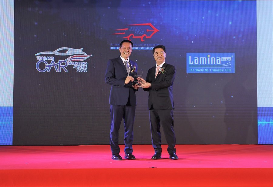 ชัยณรงค์ สายสมร ประธานเจ้าหน้าที่ฝ่ายการพาณิชย์ รับมอบรางวัลผู้จำหน่ายฟิล์มกรองแสงรถยนต์ที่มียอดจำหน่ายสูงสุด ประจำปี 2562 ในหมวดมาร์เก็ตติ้ง อวอร์ด จากนายสุริยะ จึงรุ่งเรืองกิจ รัฐมนตรีว่าการกระทรวงอุตสาหกรรม