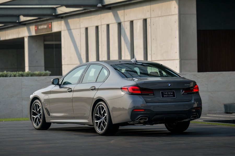 ดีไซน์ด้านท้ายรถสื่อถึงรูปลักษณ์ที่ผสานความสง่างามและล้ำสมัยด้วยเส้นสายที่คมชัดและทรงพลังเช่นเดียวกัน ไฟท้าย LED มาในรูปแบบสามมิติทรงตัว L รับกับไฟหน้า โฉบเฉี่ยวด้วยกรอบสีดำ สร้างความสะดุดตาบนท้องถนน โดยทั้งไฟท้ายและไฟเบรกได้รับการออกแบบมาให้กลมกลืนเป็นหนึ่งเดียว ทำให้บีเอ็มดับเบิลยู ซีรีส์ 5 ใหม่มีรูปโฉมที่ไม่ซ้ำใคร เสริมลุคสปอร์ตด้วยท่อไอเสียทรงสี่เหลี่ยมคางหมูที่ท้ายรถทั้งสองด้านซึ่งรวมเป็นส่วนหนึ่งของกันชนท้ายไว้ได้อย่างลงตัว