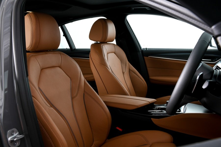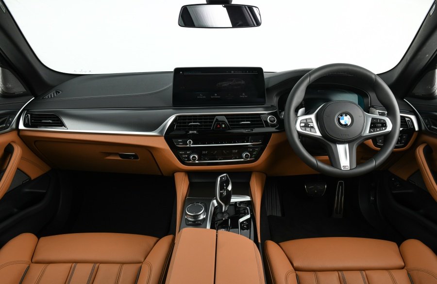 อีกหนึ่งความโดดเด่นของบีเอ็มดับเบิลยู ซีรีส์ 5 ใหม่ คือการออกแบบภายในห้องโดยสาร ที่ยังคงเน้นการผสานทั้งความสง่างามและความล้ำสมัยเข้าไว้ด้วยกัน โดยคำนึงถึงผู้ขับขี่เป็นสำคัญ จึงสร้างบรรยากาศที่สมบูรณ์แบบทั้งสำหรับการขับขี่และมอบความสะดวกสบายแม้ขณะเดินทางไกล ตกแต่งด้วยวัสดุพรีเมียมและงานฝีมือสุดประณีตจากช่างผู้เชี่ยวชาญ ปุ่มบริเวณคอนโซลกลางมาในสีดำเงาเพื่อความหรูหรา ตัดกับพวงมาลัยหุ้มหนังมัลติฟังก์ชั่น M Sport พร้อมคอนโซลด้านบนบุด้วยหนัง Sensatec ในรุ่น 520d M Sport และ 530e M Sport ทั้งสามรุ่นมาพร้อมเบาะหนังแท้ Dakota ภายในห้องโดยสารของบีเอ็มดับเบิลยู 520d M Sport และ 530e M Sport ตกแต่งด้วยอลูมิเนียมลาย Rhombicle Smoke Grey พร้อมแถบโครเมี่่ยม ขณะที่บีเอ็มดับเบิลยู 530e Elite ตกแต่งด้วยวัสดุสีดำเงาพร้อมแถบโครเมียม