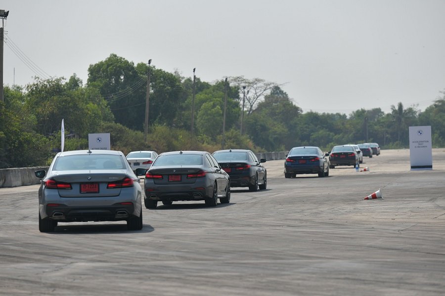การทดสอบสมรรถนะรถยนต์ครั้งนี้ จัดขึ้นที่สนามปทุมธานี สปีดเวย์ สำหรับรถยนต์ทั้งสามรุ่นเพื่อทดสอบประสิทธิภาพในสนามแข่งผ่านด่านต่าง ๆ ไม่ว่าจะเป็นด่าน Elk Test หรือการทดสอบหักหลบสิ่งกีดขวาง จนถึงด่านทดสอบอื่น ๆ เพื่อลองศักยภาพของระบบช่วงล่างและระบบขับขี่ที่ล้ำสมัยอย่างระบบปรับองศาของล้อหลังเพื่อการเข้าโค้งหรือเลี้ยว (Integral Active Steering) ในบีเอ็มดับเบิลยู 530e M Sport ใหม่ที่ทำงานตลอดเวลาในทุกย่านความเร็ว ตลอดไปจนถึงการทดสอบระบบควบคุมความเร็วอัตโนมัติ พร้อมฟังก์ชั่น Stop & Go (Active cruise control with Stop & Go function) ระบบเตือนขณะเปลี่ยนเลน (Lane Departure Warning) และระบบเตือนกันชนด้านหน้าพร้อมช่วยเบรก (Front Collision Warning) ก่อนโลดแล่นออกสู่ถนนจริงเพื่อสัมผัสถึงประสบการณ์การขับขี่ในชีวิตประจำวัน ซึ่งทั้งบีเอ็มดับเบิลยูซีรี่ส์ 5 ใหม่ และบีเอ็มดับเบิลยูซีรี่ส์ 3 Gran Sedan มาในมิติตัวรถที่ยาวขึ้นกว่ารุ่นก่อนหน้า สื่อมวลชนจึงได้พิสูจน์ถึงความคล่องตัวในการขับขี่จากประสิทธิภาพด้านอากาศพลศาสตร์ที่ยังคงลดแรงต้านได้อย่างเหนือชั้น อีกทั้งยังสามารถสัมผัสถึงพื้นที่ห้องโดยสารตอนหลังที่กว้างขวางยิ่งขึ้นและความสะดวกสบายมากขึ้นขณะเดินทางในเส้นทางต่าง ๆ บีเอ็มดับเบิลยู 520d M Sport ราคาจำหน่าย: 3,539,000 บาท (พร้อมโปรแกรมบำรุงรักษา BSI Standard) บีเอ็มดับเบิลยู 530e M Sportราคา 3,739,000 บาท (พร้อมโปรแกรมบำรุงรักษา BSI Standard)