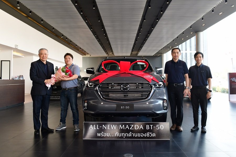 บริษัท มาสด้า (เซลส์) ประเทศไทย จำกัด นำโดย ชาญชัย ตระการอุดมสุข ประธานบริหาร พร้อมด้วย จารุรัฐ ปิงคลาศัย ประธานเจ้าหน้าที่บริหาร บริษัท มาสด้า ชลบุรี จำกัด (มหาชน) และ ณัฐกุล ปิงคลาศัย ผู้จัดการทั่วไป บริษัท มาสด้า ชลบุรี จำกัด (มหาชน) สาขากาญจนาภิเษก ร่วมส่งมอบ ALL-NEW MAZDA BT-50 รถปิกอัพเจเนอเรชั่นใหม่ที่ผนวกคุณสมบัติของปิกอัพที่ดีที่สุดในโลกรวมเป็นหนึ่งเดียวให้กับลูกค้า ณ โชว์รูมมาสด้า เจพี กาญจนาภิเษก ซึ่งรถรุ่นนี้กำลังประสบความสำเร็จอย่างท่วมท้น และได้รับเสียงตอบรับเป็นอย่างดีจากลูกค้าทั่วประเทศท่ามกลางการระบาดของโควิด-19 ตอกย้ำถึงอีกหนึ่งก้าวแห่งความสำเร็จของมาสด้าในการพัฒนา และส่งมอบยนตรกรรมที่ตอบโจทย์ความต้องการลูกค้าได้อย่างแท้จริงในทุกสถานการณ์