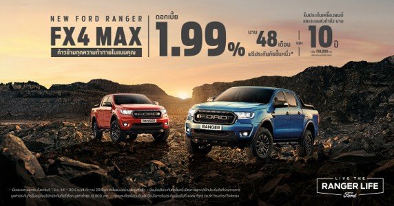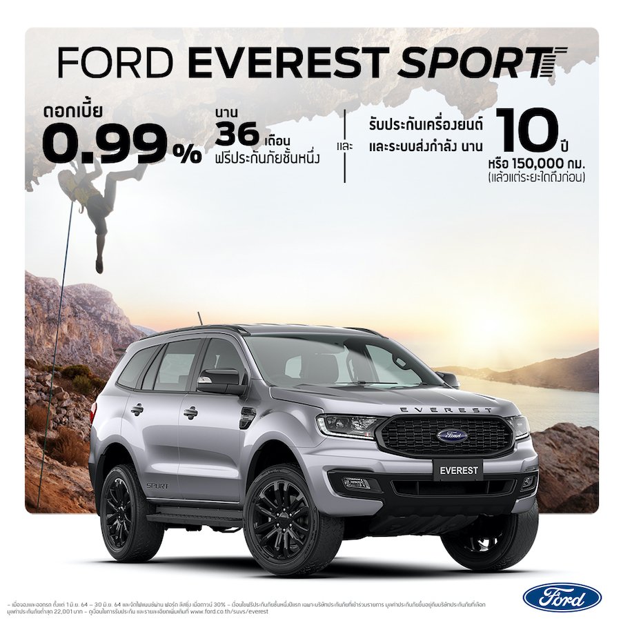 ฟอร์ด ประเทศไทย มอบข้อเสนอสุดพิเศษ รวมถึงสิทธิประโยชน์อื่นๆ สำหรับฟอร์ด เรนเจอร์ จากผู้จำหน่ายฟอร์ดทั่วประเทศ ตลอดช่วงเดือนมิถุนายน 2564 ดังนี้ ฟอร์ด เรนเจอร์ โอเพ่นแค็บ รุ่น สปอร์ต: ราคาพิเศษ 599,000 บาท จากราคาปกติ 692,000 บาท ฟอร์ด เรนเจอร์ โอเพ่นแค็บ รุ่น สทรีท: ดาวน์เพียง 25,500 บาท หรือ ผ่อนเพียง 5,999 บาทต่อเดือน พร้อมฟรีประกันภัยชั้นหนึ่ง Ford Ensure ฟอร์ด เรนเจอร์ โอเพ่นแค็บ XL: ดาวน์เพียง 25,500 บาท หรือ ผ่อนเพียง 5,699 บาทต่อเดือน พร้อมฟรีประกันภัยชั้นหนึ่ง Ford Ensure ฟอร์ด เอเวอร์เรสต์ Titanium+ 4x2: ราคาพิเศษ 1,499,000 จากราคาปกติ 1,599,000 บาท พร้อมฟรีประกันภัยชั้นหนึ่ง Ford Ensure นอกจากนี้ ฟอร์ดยังมอบข้อเสนอดอกเบี้ยพิเศษ และฟรีประกันภัยชั้นหนึ่งจาก Ford Ensure สำหรับฟอร์ด เรนเจอร์ และฟอร์ด เอเวอร์เรสต์ รุ่นต่างๆ ดังนี้ ฟอร์ด เรนเจอร์ ดับเบิ้ลแค็บ XLT: ดอกเบี้ย 0% ผ่อนนาน 48 เดือน ฟอร์ด เรนเจอร์ ไวลด์แทรค: ดอกเบี้ย 0.49 % ผ่อนนาน 48 เดือน ฟอร์ด เรนเจอร์ FX4 Max: ดอกเบี้ย 1.99% ผ่อนนาน 48 เดือน ฟอร์ด เอเวอร์เรสต์ รุ่น Titanium+ 4x4, รุ่นสปอร์ต และรุ่นเทรนด์: ดอกเบี้ย 0.99% ผ่อนนาน 36 เดือน พิเศษสุดในเดือนมิถุนายน 2564 นี้ ฟอร์ดมอบการรับประกันเครื่องยนต์และระบบส่งกำลังนาน 10 ปี หรือ 150,000 กม.(แล้วแต่ระยะใดถึงก่อน) สำหรับรถฟอร์ดที่ติดตั้งเครื่องยนต์ดีเซล 2.0 ลิตรทุกรุ่น เพื่อที่สุดของความอุ่นใจให้กับผู้ที่จองและออกรถในเดือนมิถุนายน