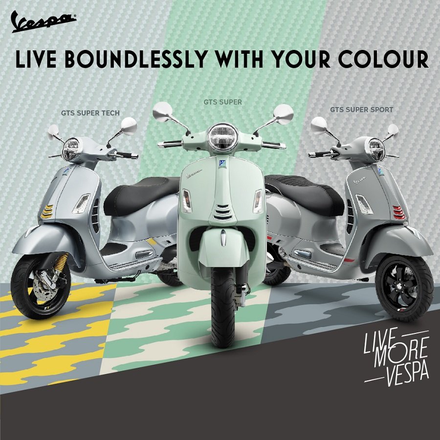 “เวสป้า” กับ 75 ปีแห่งการเป็นเพื่อนคู่หูที่เปี่ยมด้วยสีสัน ครั้งนี้เวสป้าพร้อมบอกเล่าเรื่องราวแห่งสไตล์กับ 3 เฉดสีใหม่ จากสกู๊ตเตอร์เฟรมใหญ่ตระกูลจีทีเอส (GTS) หนึ่งในรุ่นยอดนิยมตลอดกาล ด้วย 3 รุ่น 3 สไตล์ กับ VESPA GTS SUPER 150 i-Get ABS สีเขียวมิ้นท์ Green Relax, VESPA GTS SUPER SPORT 300 HPE สีเทาเข้ม Grey Materia และ VESPA GTS SUPER TECH 300 HPE สีเทา Grey Delicato ให้คุณใช้ชีวิตอย่างไร้ขีดจำกัดไปกับสีสันที่เต็มไปด้วยแรงบันดาลใจบนเฟรมเหล็ก เอกลักษณ์เฉพาะแบรนด์