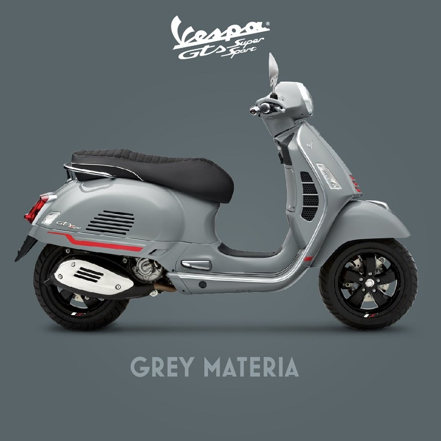 ต่อกันที่ VESPA GTS SUPER SPORT 300 HPE สีเทาเข้ม Grey Materia ที่สุดแห่งความสปอร์ตของสกู๊ตเตอร์ มาพร้อมกับเครื่องยนต์ทรงสมรรถนะ HPE (High Performance Engine) ที่มอบอัตราเร่งยอดเยี่ยม พร้อมพาคุณโลดแล่นดั่งใจ ขับเน้นบุคลิกมาดมั่นด้วย สีเทาเข้ม Grey Materia สัญลักษณ์ของจิตวิญญาณแห่งความมั่นคงและแข็งแกร่ง สะท้อนความสปอร์ตอีกขั้นด้วยดีไซน์ลายกราฟิกสีแดงด้านข้างที่ได้รับการปรับปรุงใหม่ทั้งหมดในปี 2021 ซึ่งสอดรับกับบังแตรในเฉดสีเดียวกัน พร้อมตอบสนองความต้องการของหนุ่มๆ ที่อยากอัปเกรดอินเนอร์ความสปอร์ตในตนเอง สำหรับสกู๊ตเตอร์รุ่นนี้ราคา 215,900 บาท