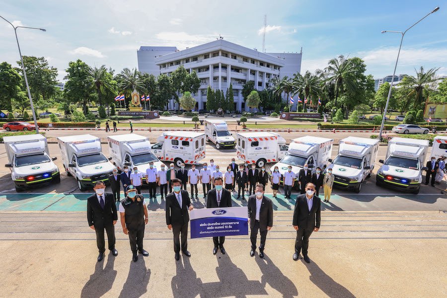 ฟอร์ด ประเทศไทย มอบรถพยาบาลบริการการแพทย์ฉุกเฉิน BACE รุ่น RESCUE T1 พร้อมอุปกรณ์การแพทย์ครบครันจำนวน 10 คัน มูลค่ากว่า 12 ล้านบาท ให้แก่กระทรวงสาธารณสุข เพื่อสนับสนุนการปฏิบัติงานทางการแพทย์ในสถานการณ์การแพร่ระบาดของโรคโควิด-19 และเพื่อใช้งานตามวัตถุประสงค์อื่นที่จำเป็นหรือเป็นประโยชน์ต่อสังคม โดยมีนายอนุทิน ชาญวีรกูล รองนายกรัฐมนตรีและรัฐมนตรีว่าการกระทรวงสาธารณสุข และดร. สาธิต ปิตุเตชะ รัฐมนตรีช่วยว่าการกระทรวงสาธารณสุข เป็นผู้รับมอบจากนายวิชิต ว่องวัฒนาการ กรรมการผู้จัดการ ฟอร์ด ประเทศไทย พร้อมด้วยนายจักริศวร์ โลจนะโกสินทร์ ผู้จัดการทั่วไป บริษัท เอส.เอส.เอส. ออโตโมทีฟ อินดัสทรี จำกัด และคณะ