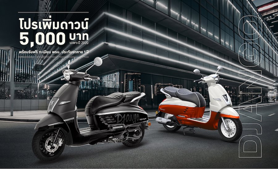 โอกาสดีที่คุณจะได้สัมผัสสกู๊ตเตอร์พรีเมียม จากเมืองน้ำหอมฝรั่งเศส! Peugeot Django ด้วยข้อเสนอสุดพิเศษที่มีมาเพื่อคุณเท่านั้น  เพียงออกรถ Peugeot Django ภายในวันนี้ – 30 ก.ย. 64 นี้! *รับโปรเพิ่มดาวน์ 5,000 บาท*