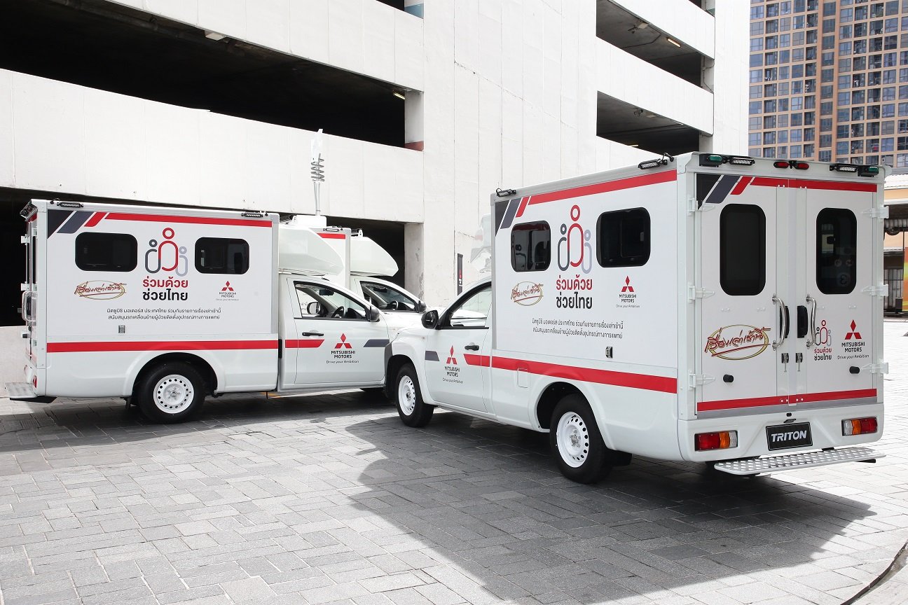 มิตซูบิชิ มอเตอร์ส ประเทศไทย สนับสนุนรถกระบะ มิตซูบิชิ ไทรทัน จำนวน 3 คัน เพื่อร่วมภารกิจเคลื่อนย้ายผู้ติดเชื้อไวรัสโควิด-19 เพื่อเข้ารับการรักษาตัวที่ฮอสพิเทลและโรงพยาบาลทั่วประเทศ โดยรถกระบะดังกล่าว ได้ถูกดัดแปลงและติดตั้งอุปกรณ์ทางการแพทย์ที่จำเป็น พร้อมระบบป้องกันเชื้อโรค โดยสามารถรองรับผู้โดยสารรวมถึงคนขับได้สูงสุดถึง 12 ที่นั่ง