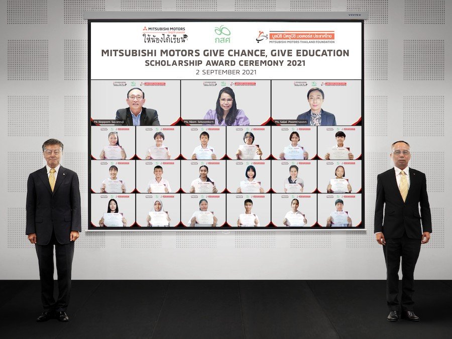 บริษัท มิตซูบิชิ มอเตอร์ส (ประเทศไทย) จำกัด พร้อมด้วย มูลนิธิ มิตซูบิชิ มอเตอร์ส ประเทศไทย นำโดย โมะริคาซุ ชกกิ ประธานมูลนิธิฯ จัดพิธีมอบทุนการศึกษาในโครงการ “มิตซูบิชิ มอเตอร์ส ให้น้องได้เรียน” โดยมี นพพร สุวรรณรุจิ อนุกรรมการบริหารจัดการเงินหรือทรัพย์สิน กองทุนเพื่อความเสมอภาคทางการศึกษา (กสศ.) ดร. นิอร ศรีสุนทร รองผู้อำนวยการสำนักงานเขตพื้นที่การศึกษาประถมศึกษาชลบุรี เขต 1 , สายใจ พุ่มถาวร รองผู้อำนวยการสำนักงานเขตพื้นที่การศึกษาประถมศึกษาปทุมธานี เขต 2 คณาจารย์ และผู้บริหารจาก มิตซูบิชิ มอเตอร์ส ประเทศไทย ร่วมแสดงความยินดีในพิธี เพื่อสนับสนุนให้เยาวชนไทยที่เรียนดี แต่ขาดแคลนทุนทรัพย์ได้มีโอกาสศึกษาเล่าเรียนอย่างต่อเนื่อง แม้ในช่วงสถานการณ์การแพร่ระบาดของโรคโควิด-19
