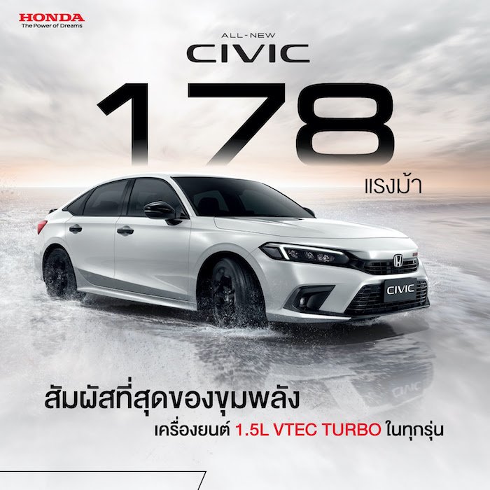 ฮอนด้า ซีวิค ใหม่ เจเนอเรชันที่ 11 ยกระดับประสบการณ์ความสมบูรณ์แบบในทุกมิติ โดดเด่นด้วยดีไซน์ภายนอกสปอร์ตพรีเมียมในทุกมุมมอง ภายในห้องโดยสารกว้างขวางสะดวกสบาย ให้ความแรงทรงพลังเร้าใจเกินใครในทุกรุ่นย่อย ด้วยขุมพลังเครื่องยนต์ VTEC TURBO 1.5 ลิตร ใหม่ พร้อมระบบเกียร์ CVT ให้กำลังสูงสุด 178 แรงม้า ให้อัตราการประหยัดน้ำมันดีเยี่ยม 17.2 กม./ลิตร และรองรับพลังงานทางเลือก E85 และมาพร้อมเทคโนโลยีความปลอดภัยอัจฉริยะ ฮอนด้า เซนส์ซิ่ง (Honda SENSING) ที่ยกระดับไปอีกขั้นกับระบบใหม่ ระบบเตือนเมื่อรถคันหน้าเคลื่อนที่ (Lead Car Departure Notification System: LCDN)