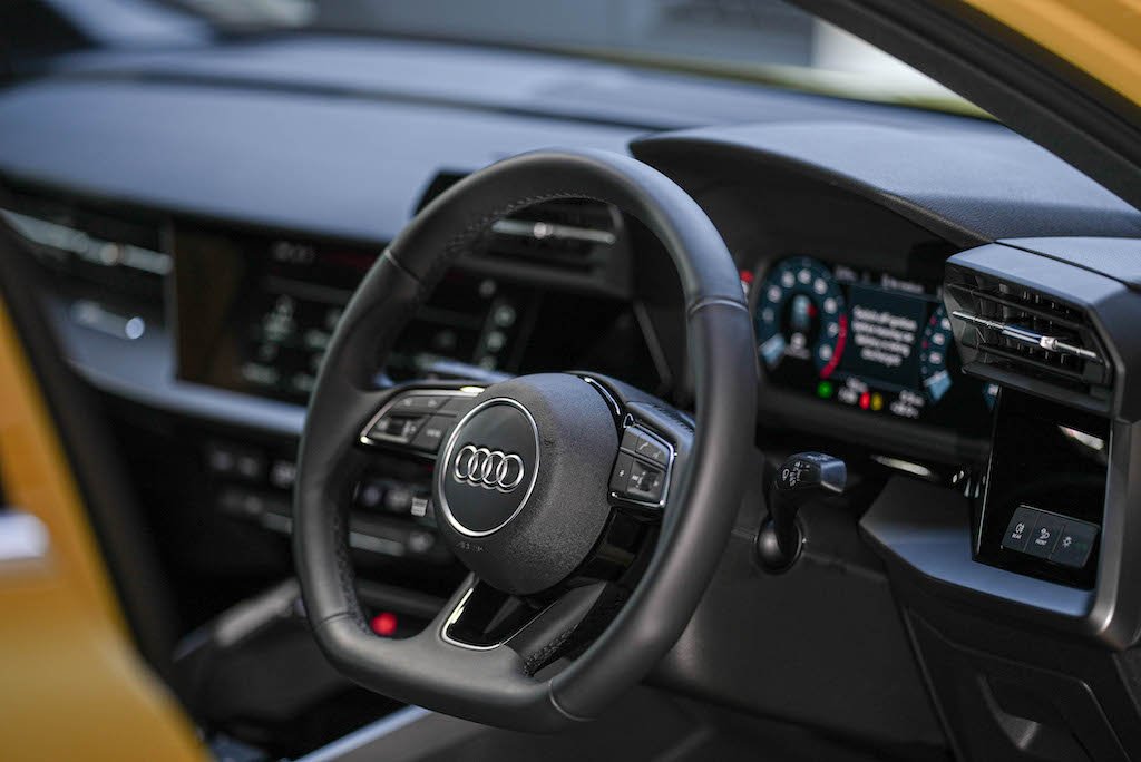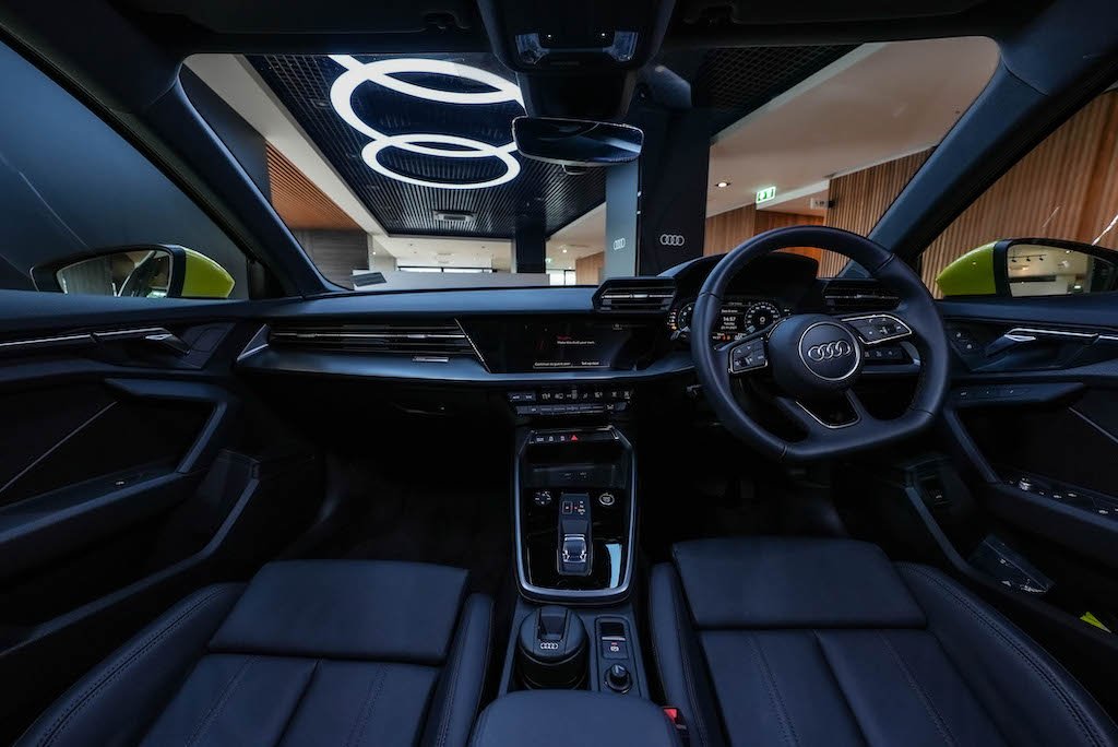 ภายในห้องโดยสารกว้างสะดวกสบาย ตกแต่งด้วยลวดลาย Platinum grey พร้อมเบาะนั่งคู่หน้าแบบ Sport ให้ลุคพรีเมียม ระบบพวงมาลัยไฟฟ้าแบบ Progressive Steering ระบบหน้าจอ MMI Radio plus แบบสัมผัส (MMI touch) ขนาด 10.1 นิ้ว พร้อมติดตั้งระบบเชื่อมต่อ Audi smartphone interface และรองรับการเชื่อมต่อ Bluetooth ระบบ Audi sound system หน้าจอ Digital Instrument Cluster ซึ่งเป็นอุปกรณ์มาตรฐาน ในรุ่น The All-New A3 Sportback 35 TFSI S line การตอบสนองของพวงมาลัยตามสภาพการขับขี่ ปุ่มควบคุมเครื่องเสียง เพิ่มหรือลดเสียงเป็นแบบระบบสัมผัสแบบเดียวกันกับที่ใช้ใน Audi e-tron GT และระบบปรับอากาศแยกอิสระ 3 โซน สิ่งอำนวยความสะดวกมาตรฐานที่บรรจุมาในรถยังประกอบไปด้วย เบาะหนังปรับไฟฟ้าคู่หน้า พร้อมระบบบันทึกความจำสำหรับเบาะที่นั่งคนขับ ฝาท้ายเปิดปิดได้ด้วยระบบไฟฟ้าพร้อม Kick Sensor กล้องถอยหลังขณะเข้าจอด