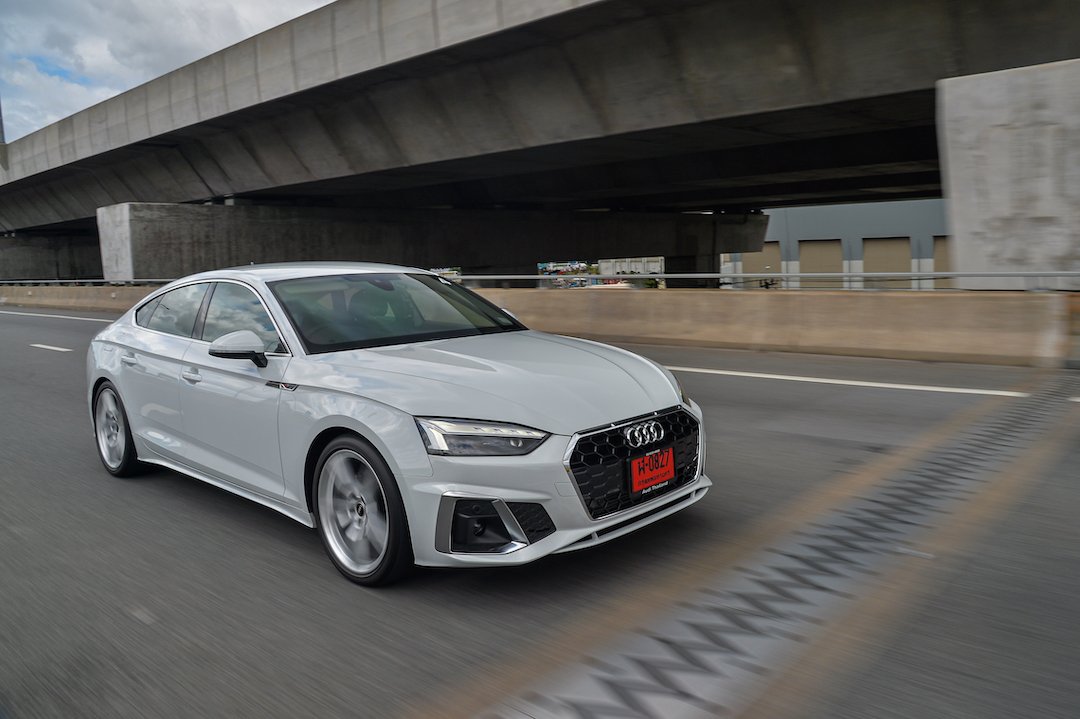 ผู้เขียนได้ทดลองขับในรุ่น A5 Sportback จากการขับขี่ผ่านการจราจรติดขัดในเมือง ต้องบอกว่า A5 Sportback ให้ความคล่องตัว พวงมาลัยเบาหักเลี้ยวง่ายเมื่อต้องการเปลี่ยนเลนช่วงรถติด อัตราเร่งตีนต้นให้พละกำลังที่ดี รถพร้อมกระโจนออกไปเมื่อแตะคันเร่ง จากนั้นได้ลองขับเพื่อพิสูจน์สมรรถนะความเร็วบนทางโล่ง ขุมพลังและเครื่องยนต์ให้อัตราเร่งที่ดี กำลังมาต่อเนื่อง ทำให้ทะยานสู่ความเร็วแตะ 120 กม./ชม. ได้อย่างรวดเร็ว ขับขี่ผ่านทางโค้งต่อเนื่องได้อย่างมั่นใจ ด้วยระบบช่วงล่างที่เซ็ทมาอย่างดี พร้อมทั้งพวงมาลัยจะหน่วงขึ้นเมื่อขับเร็วขึ้น ทำให้มั่นใจและขับง่ายมากขึ้น ตัวรถให้ความสปอร์ตลู่ลม ส่วนภายในออกแบบได้อย่างหรูหรา วัสดุอุปกรณ์และฟังก์ชั่นการใช้งานติดตั้งอยู่ในตำแหน่งที่ใช้งานง่าย กระจกมองข้างออกแบบมาให้สปอร์ตสวยงาม