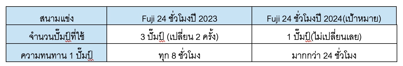 ① พัฒนาปั๊มป์ไฮโดรเจนเหลวให้คงทนมากขึ้น พัฒนา “ปั๊มป์” ที่จะอัดความดันไฮโดรเจนเหลวเพิ่มขึ้นเพื่อส่งไปให้เครื่องยนต์ให้มีความคงทนเพิ่มมากขึ้นเป็นอย่างมาก สามารถวิ่งได้ตลอด 24 ชั่วโมงโดยไม่ต้องเปลี่ยนชิ้นส่วน (ต่างจากการแข่งขัน 24 ชั่วโมงปีที่แล้วที่ต้องเปลี่ยน 2 ครั้ง) เครื่องยนต์ไฮโดรเจนส่งกำลังได้โดยการเผาไหม้ไฮโดรเจนที่ใช้เป็นเชื้อเพลิงซึ่งถูกอัดเข้าห้องเครื่องยนต์โดยตรง โคโรลล่าเครื่องยนต์ไฮโดรเจนมีปั๊มป์ที่จะอัดอากาศด้วยการให้แรงอัดแบบหมุนไปกลับของลูกสูบ (หรือระบบแรงอัดแบบหมุนไปกลับ) ส่งไฮโดรเจนจากถังเก็บเชื้อเพลิงไปยังเครื่องยนต์ ปั๊มป์นี้ต้องรับกับช่วงแรงอัดมหาศาลที่เกิดขึ้นจากระบบแรงอัดแบบหมุนไปกลับของลูกสูบ ทำให้ตลับลูกปูน(ชิ้นส่วนที่จะทำให้เพลาหมุนได้อย่างคล่องตัว) รวมถึงเกียร์ (เฟือง) ต้องรับแรงมหาศาล เป็นเหตุให้เกิดการสึกกร่อนหรือเสื่อมสภาพได้ง่ายในครั้งนี้ เพื่อยกระดับความทนทานของปั๊มป์ จึงได้พัฒนาโครงสร้างของข้อเหวี่ยงเป็นแบบ Dual-Drive ทำให้สามารถส่งแรงบิดจากข้อเหวี่ยงทั้งสองด้านเข้าสู่มอเตอร์ได้ ทำให้การหมุนไปกลับของลูกสูบสร้างแรงอัดได้อย่างสมดุลย์ดี ส่งผลให้ปั๊มป์มีความทนทานเพิ่มมากขึ้นเป็นอย่างมาก