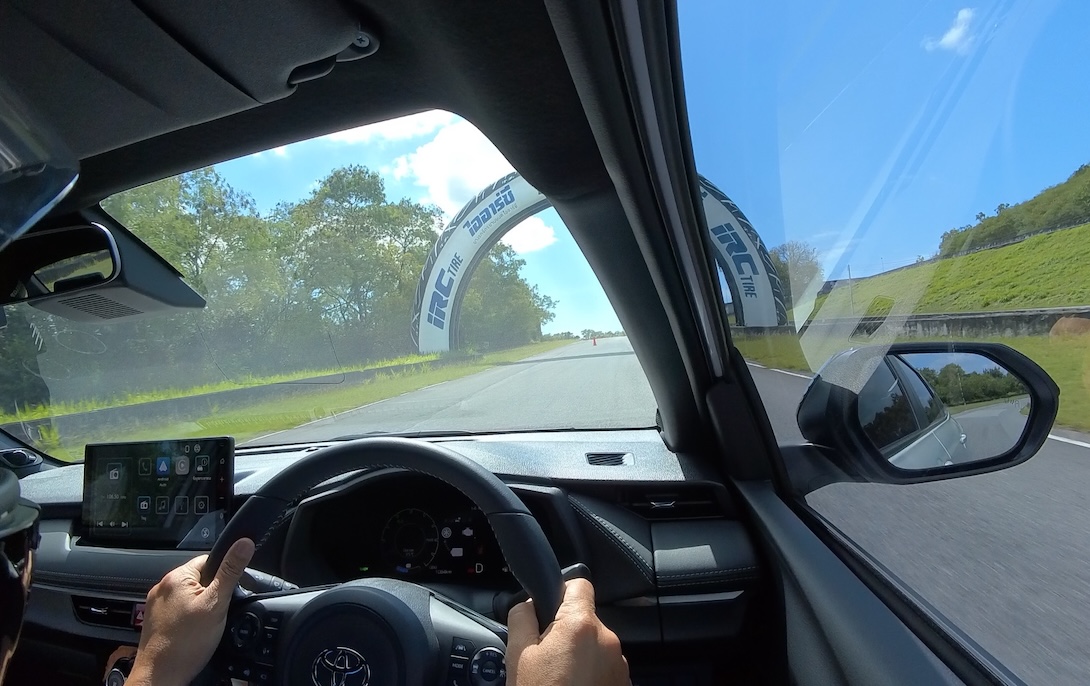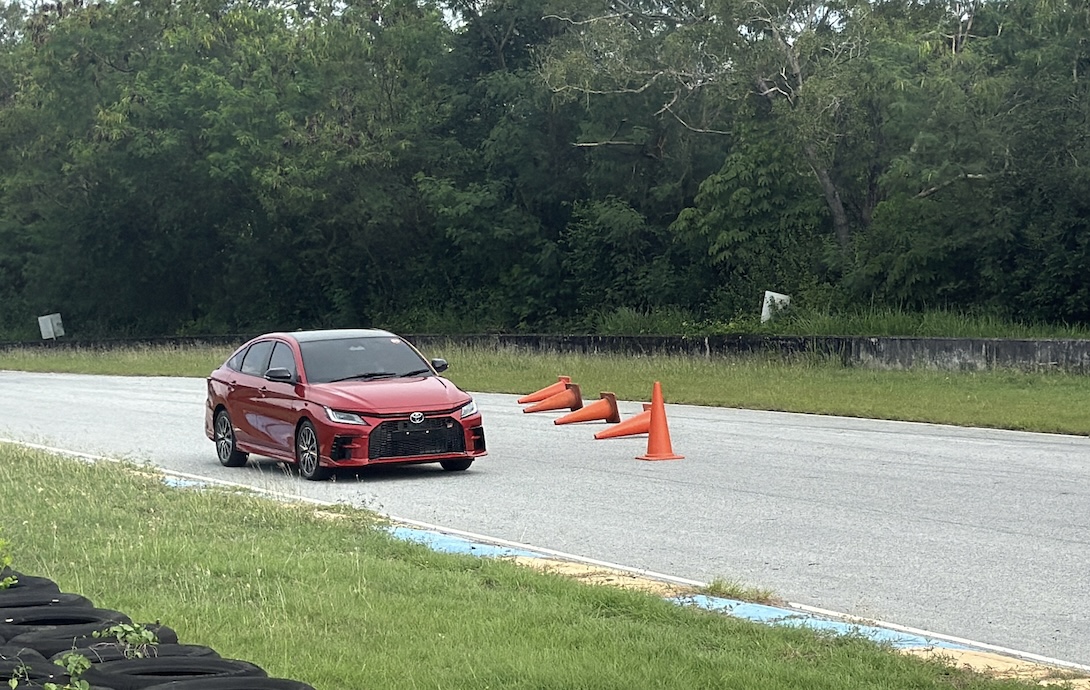 ขับมาถึงสนามพีระ ได้มีโอกาสทดลองขับรุ่น HEV GR SPORT ที่มีช่วงล่างด้านหน้าแบบ MacPherson Strut พร้อมเหล็กกันโคลง และช่วงล่างด้านหลัง Torsion Beam พร้อมเหล็กกันโคลง มีการปรับเซ็ทระบบช่วงล่าง ทั้งสปริง และโช๊คอัพ ใหม่ เน้นสปอร์ต ขับสนุก ได้ลองสนามขับจริงรู้สึกว่าช่วงล่างแตกต่างจากรุ่น HEV Premium อย่างเห็นได้ชัด เข้าโค้งแรงๆ ช่วงล่างแน่นหนึบ ไม่กระด้างทั้งยังดูดซับแรงสั่นสะเทือนได้ดี ส่วนของน้ำหนักพวงมาลัยควบคุมได้ง่าย ได้ลองขับขี่ทางตรงใช้ความเร็วสูงมีความนิ่ง แน่น หนึบ